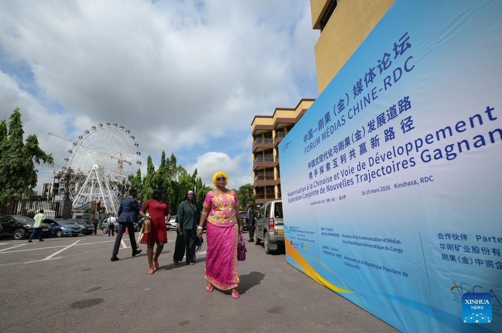 Forum participants arrive at the venue of the China-Democratic Republic of the Congo (DRC) Media Forum in Kinshasa, the DRC capital, on March 18, 2026. The China-Democratic Republic of the Congo (DRC) Media Forum was held on Wednesday in Kinshasa, the DRC capital.