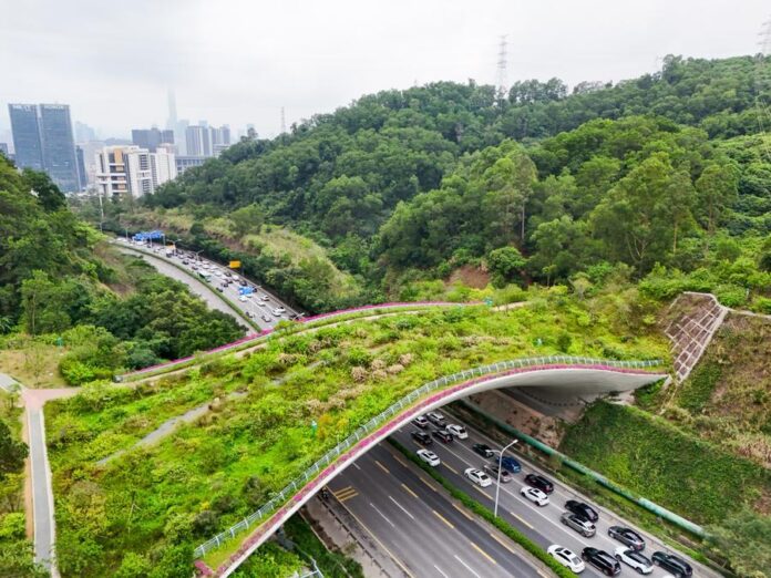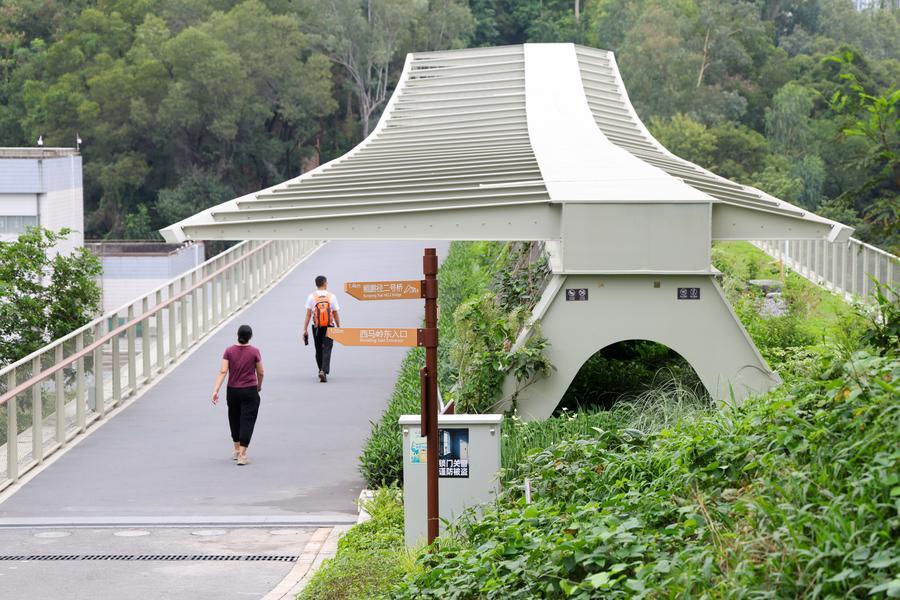 This photo taken on April 21, 2026 shows a view of Kunpeng Trail No. 2 Bridge, with a pedestrian walkway on the right and a wildlife passage on the left, in Shenzhen, south China’s Guangdong Province. (Xinhua/Liang Xu)This undated screenshot from a video clip taken by an infrared camera shows wild boars walking through Kunpeng Trail No. 1 Bridge in Shenzhen, south China’s Guangdong Province. (Xinhua)This undated screenshot from a video clip taken by an infrared camera shows a leopard cat walking through Kunpeng Trail No. 1 Bridge in Shenzhen, south China’s Guangdong Province. (Xinhua)This photo taken on April 21, 2026 shows a wildlife passage on Kunpeng Trail No. 3 Bridge in Shenzhen, south China’s Guangdong Province. (Xinhua/Liang Xu)This photo taken on April 21, 2026 shows a view of Kunpeng Trail No. 3 Bridge, with a pedestrian walkway on the left and a wildlife passage on the right, in Shenzhen, south China’s Guangdong Province. (Xinhua/Liang Xu)■