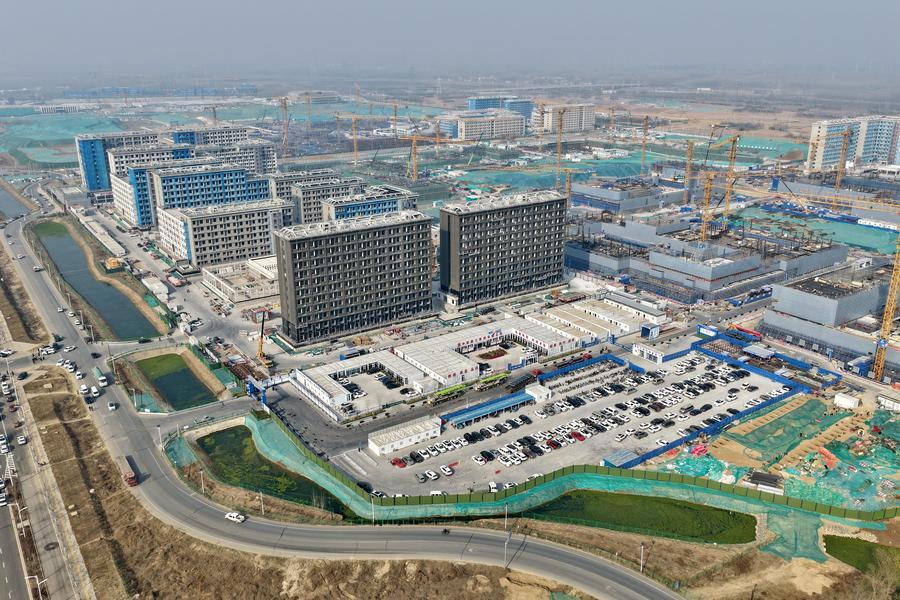 A staff member of the China Construction Second Engineering Bureau Ltd. works at the construction site of the Xiong’an campus of the University of Science and Technology Beijing in Xiong’an New Area, north China’s Hebei Province, March 25, 2026. (Xinhua/Mu Yu)An aerial drone photo taken on March 25, 2026 shows staff members of China Construction Third Engineering Bureau Group Co., Ltd. working at the construction site of the headquarters of China Mineral Resources Group Ltd. in Xiong’an New Area, north China’s Hebei Province. (Xinhua/Mu Yu)An aerial drone photo taken on March 25, 2026 shows a scene at the construction site of the Xiong’an campus of Beijing Forestry University in Xiong’an New Area, north China’s Hebei Province. (Xinhua/Mu Yu)